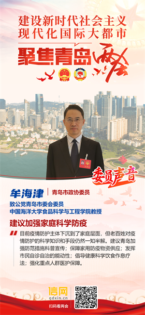 今年两会,青岛市政协委员、致公党青岛市委会委员、中国海洋大学食品科学与工程学院教授牟海津从青岛加强家庭科学防疫举措建言。