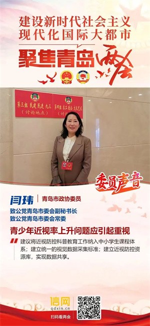 今年两会,青岛市政协委员、致公党青岛市委会副秘书长、致公党青岛市委会常委闫玮从青岛推进近视防控工作进行建议。