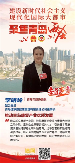 致公党员、青岛市政协委员、青岛佳家康健康管理有限责任公司董事长李晓玲,在今年两会就推动青岛康复产业优质发展提出建议。
