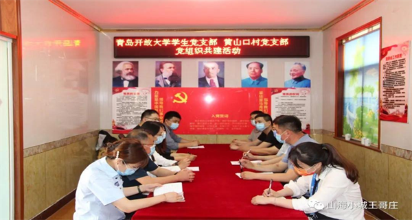 青岛市崂山区王哥庄街道黄山口村党支部与青岛开放大学学生党支部开展党建结对共建活动,双方将以党建为媒,以特色产业发展为依托