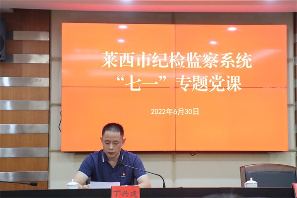 近日,青岛莱西市委常委、市纪委书记、市监委主任丁兴建以“在推进党的自我革命中更好履行纪检监察职责,坚持不懈把全面从严治党向纵深推进”为主题,为莱西市纪检监察干部作“七一”专题党课报告。